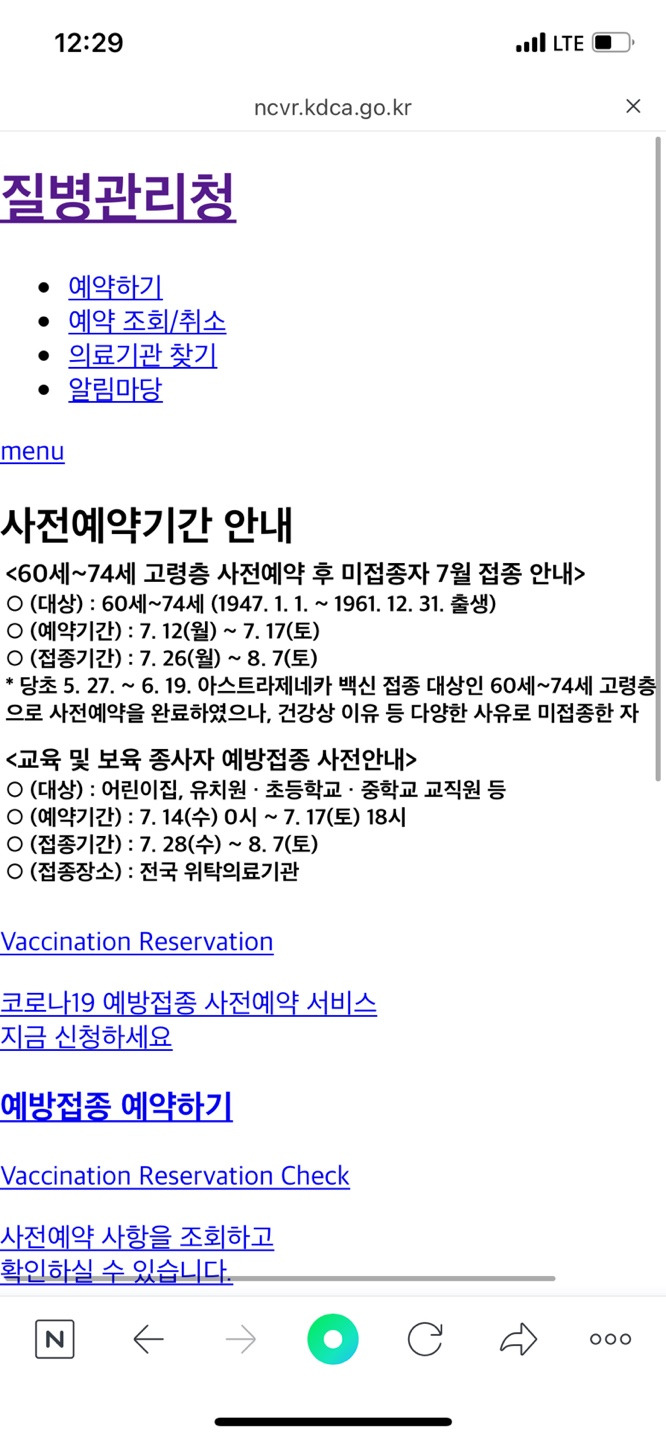 코로나19 예방접종 사전예약 시스템을 통한 백신예약 방법.